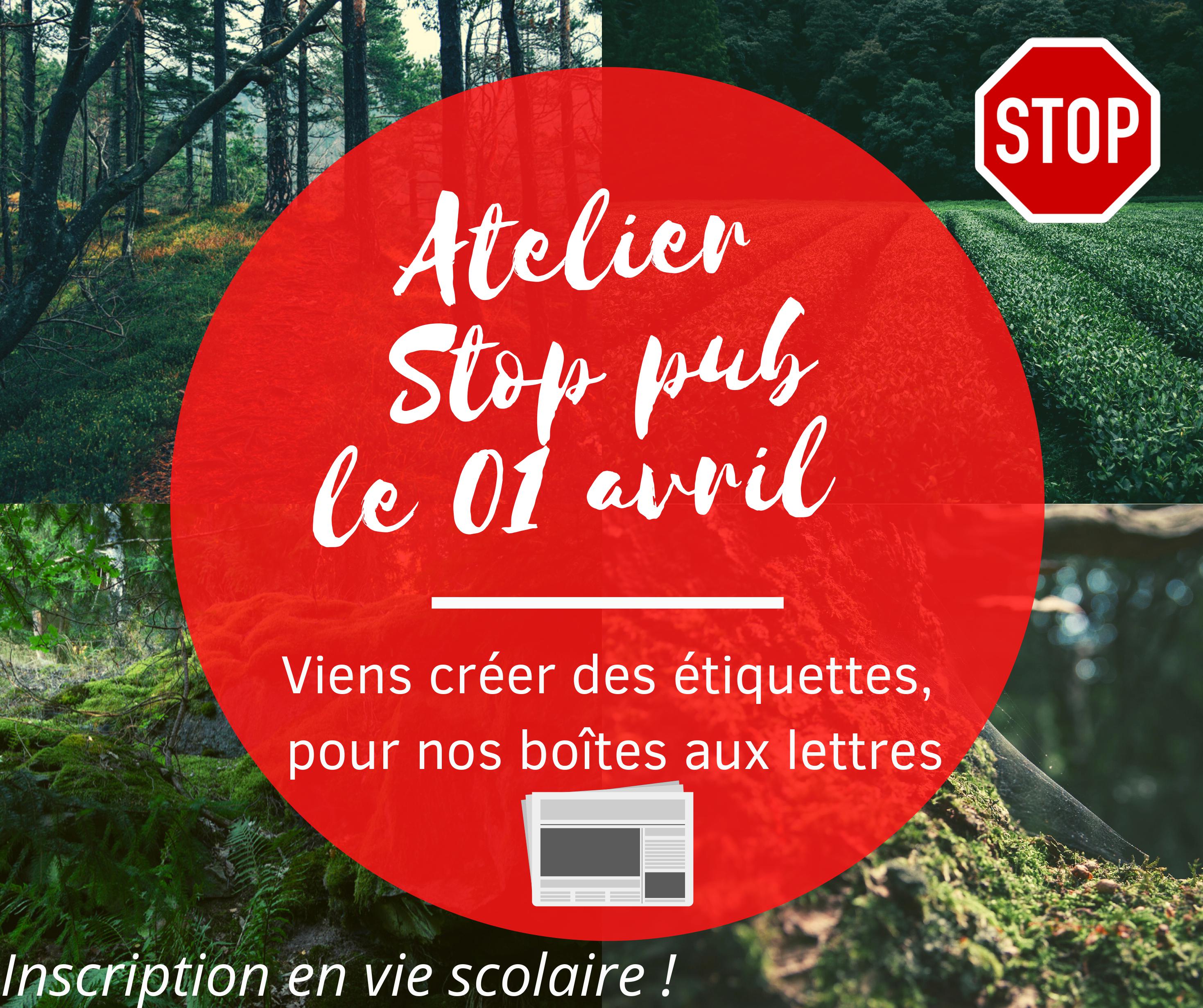 - jeudi 1 avril : création de "stop pub" à coller sur ta boîte aux lettres
